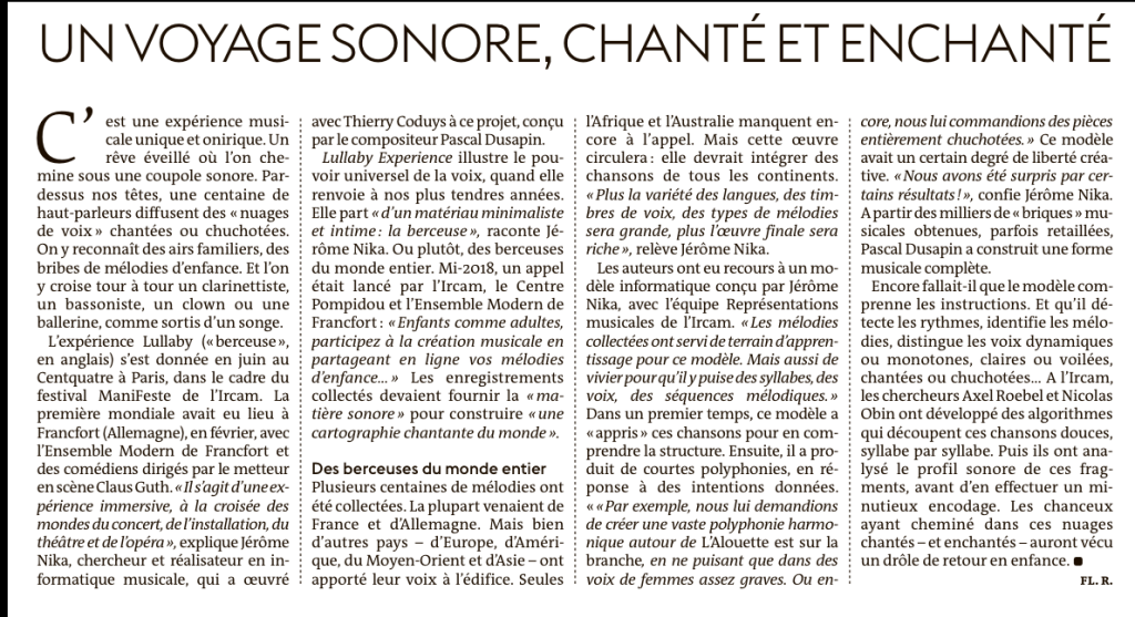 Articles about Ircam Manifeste Festival and Lullaby Experience:
