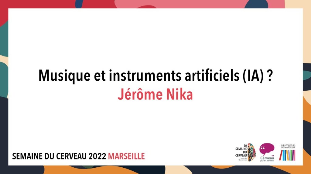 “Music and Artificial Instruments (AI)?” – Invited conference for the general public in the framework of the Semaine du Cerveau Marseille (Bibliothèque Alcazar) by Jérôme Nika IRCAM, March 16, 2022. Available on youtube :