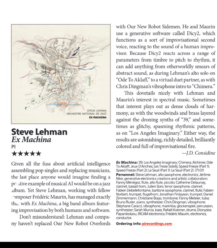 - Ex Machina in the top jazz album of 2023 in Downbeat.