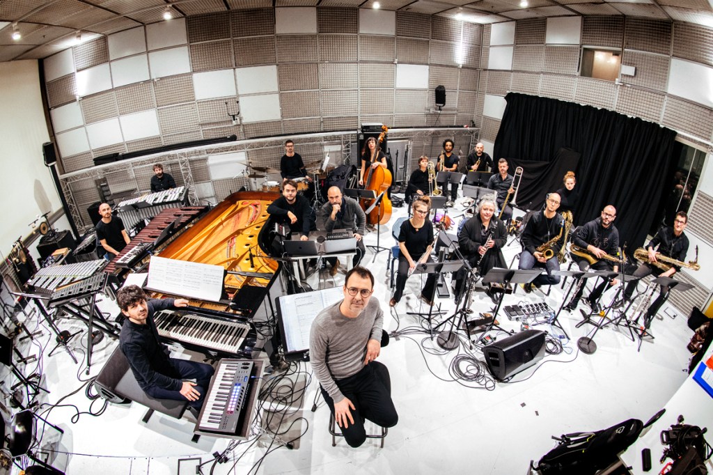Ex Machina, the new collaboration between visionary saxophonist / composer Steve Lehman and the GRAMMY-nominated Orchestre National de Jazz (ONJ), is a dazzling work that sets a new standard of innovation for large jazz ensembles. With compositions by both Lehman and ONJ’s artistic director, Frédéric Maurin, Ex Machina makes frequent use of otherworldly spectral harmonies that are reinforced and transformed, in real-time by live, interactive electronics developed at IRCAM (Institut de Recherche et Coordination Acoustique Musique, founded in 1977 by Pierre Boulez). Soloists in the ensemble interact with highly-nuanced harmonies, propulsiverhythms, and computer-driven sound transformations to thrilling effect. This ambitious project is indisputably a major conceptual step forward for jazz big band.