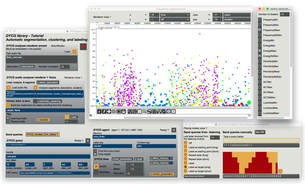 Le projet s’articule autour des outils de la librairie DYCI2 (https://github.com/DYCI2/Dyci2Lib) développée au sein de l’équipe Représentations Musicales à l’IRCAM, cette librairie informatique repose sur des modèles de machine learning et est développée par l’auteur au sein de l’équipe Représentations Musicales de l’Ircam.