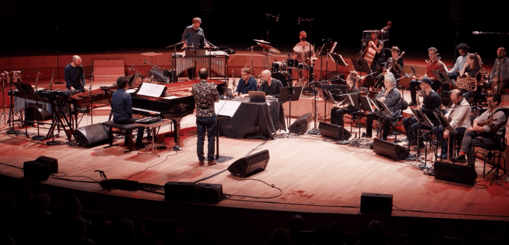 The second part of the work consists in defining databases of textures on which temporal models have been learned, then used with the OM-DYCI2 environment for the electronic orchestration of portions of scores composed by Steve Lehman and Frédéric Maurin. The audio material resulting from these generations will then be triggered during the concert to augment the orchestra’s playing.